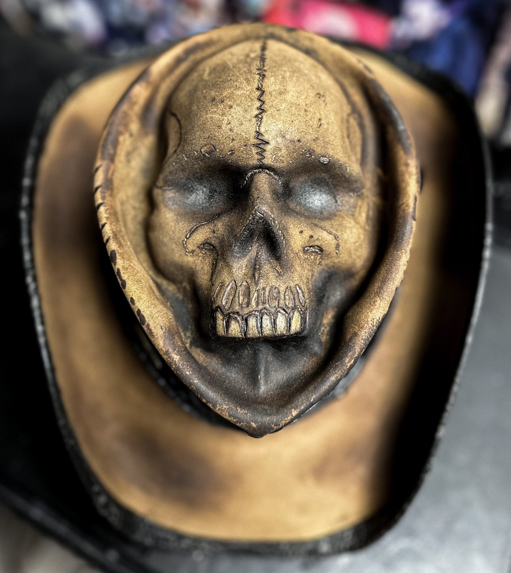 Crafted from fine rabbit fur felt, this timeless skull hat is 100% handmade, ensuring each piece is unique. The tone and base of the hat may vary slightly from the photos due to its handcrafted nature.